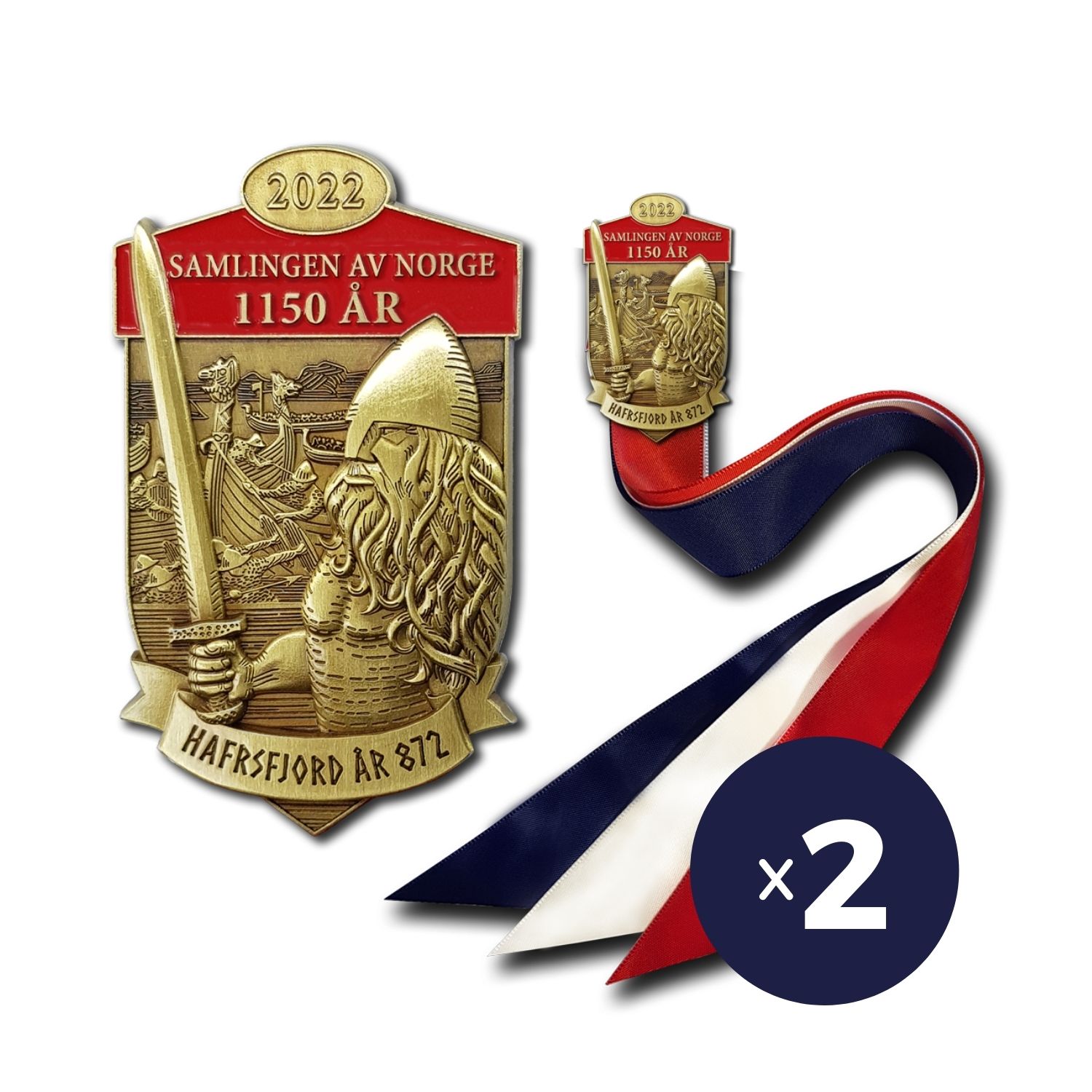 Denne storslagne medaljen er viet feiringen av samlingen av Norge. Begivenheten er mest kjent under «Slaget på Stiklestad» og fant sted i år 1032. Designet på medalje illustrerer denne begivenheten. I pakken følger det med: sløyfe, medalje, gavepose, jubileumsbrosjyre.